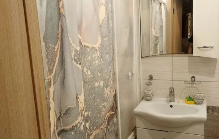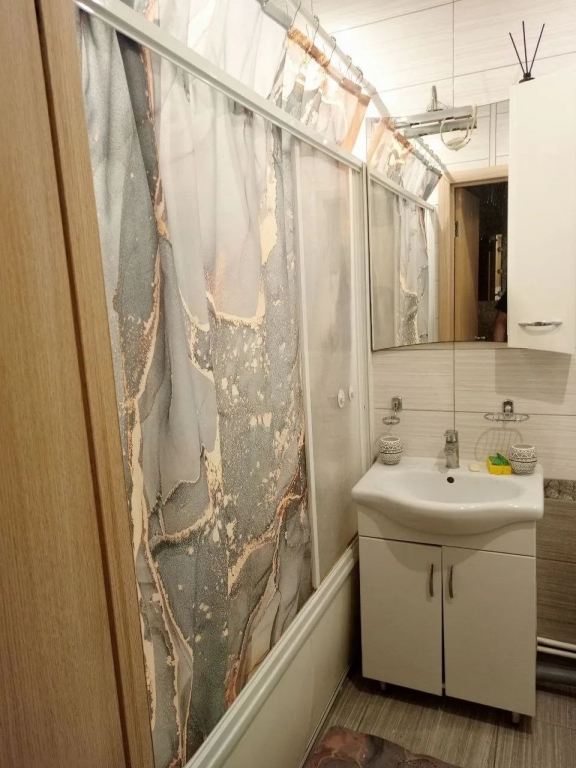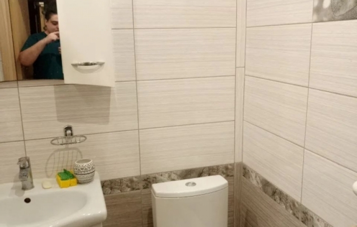 Квартира с современным ремонтом, светлая и просторная. В квартире совмещенный санузел, оформленный в светлых тонах.